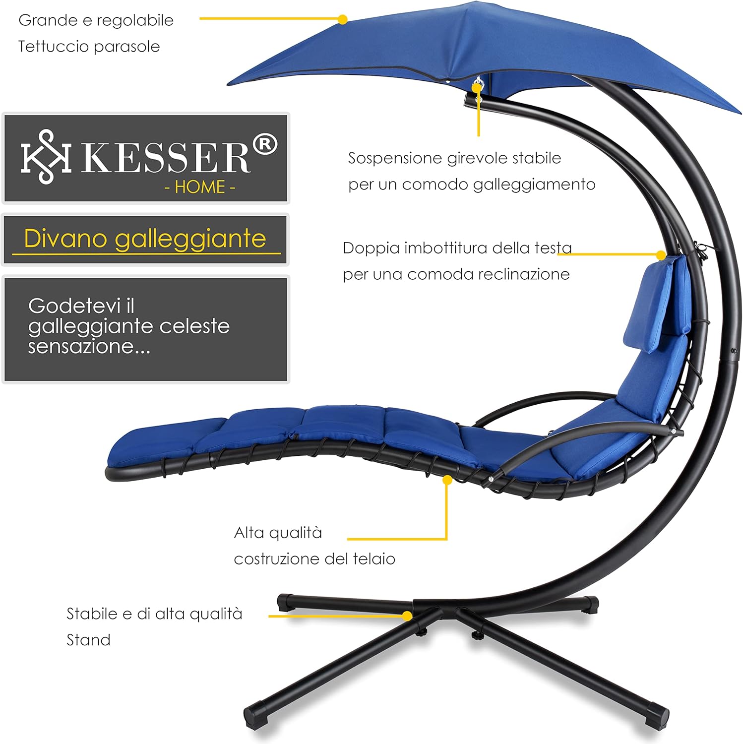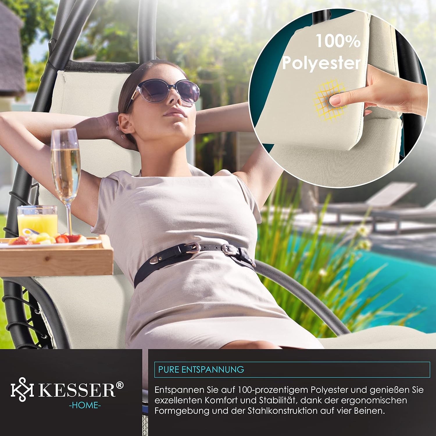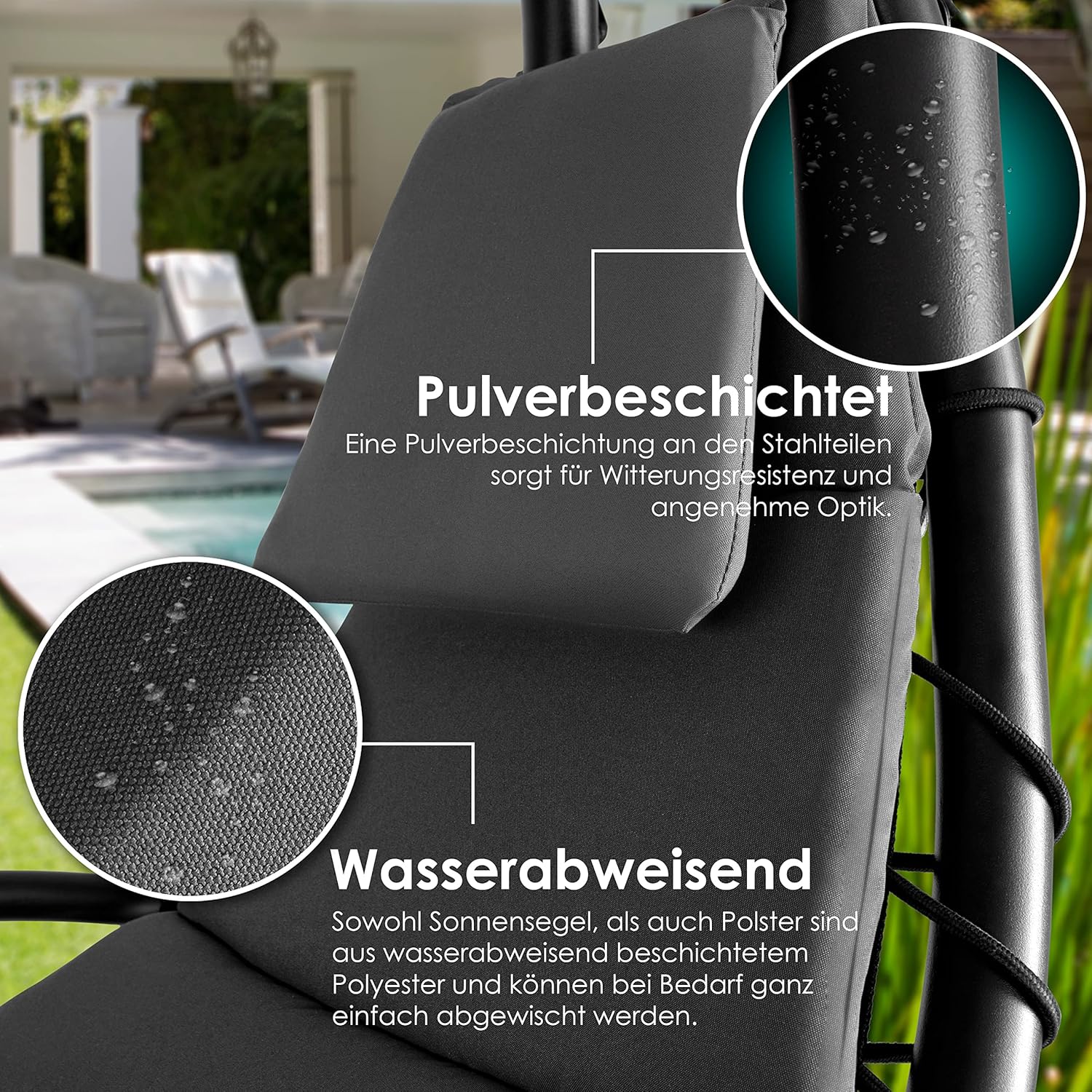- ÉQUIPEMENT COMPLET : Chaise longue avec support, matelas et pare-soleil amovible inclus.