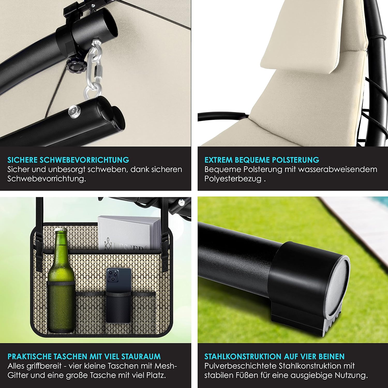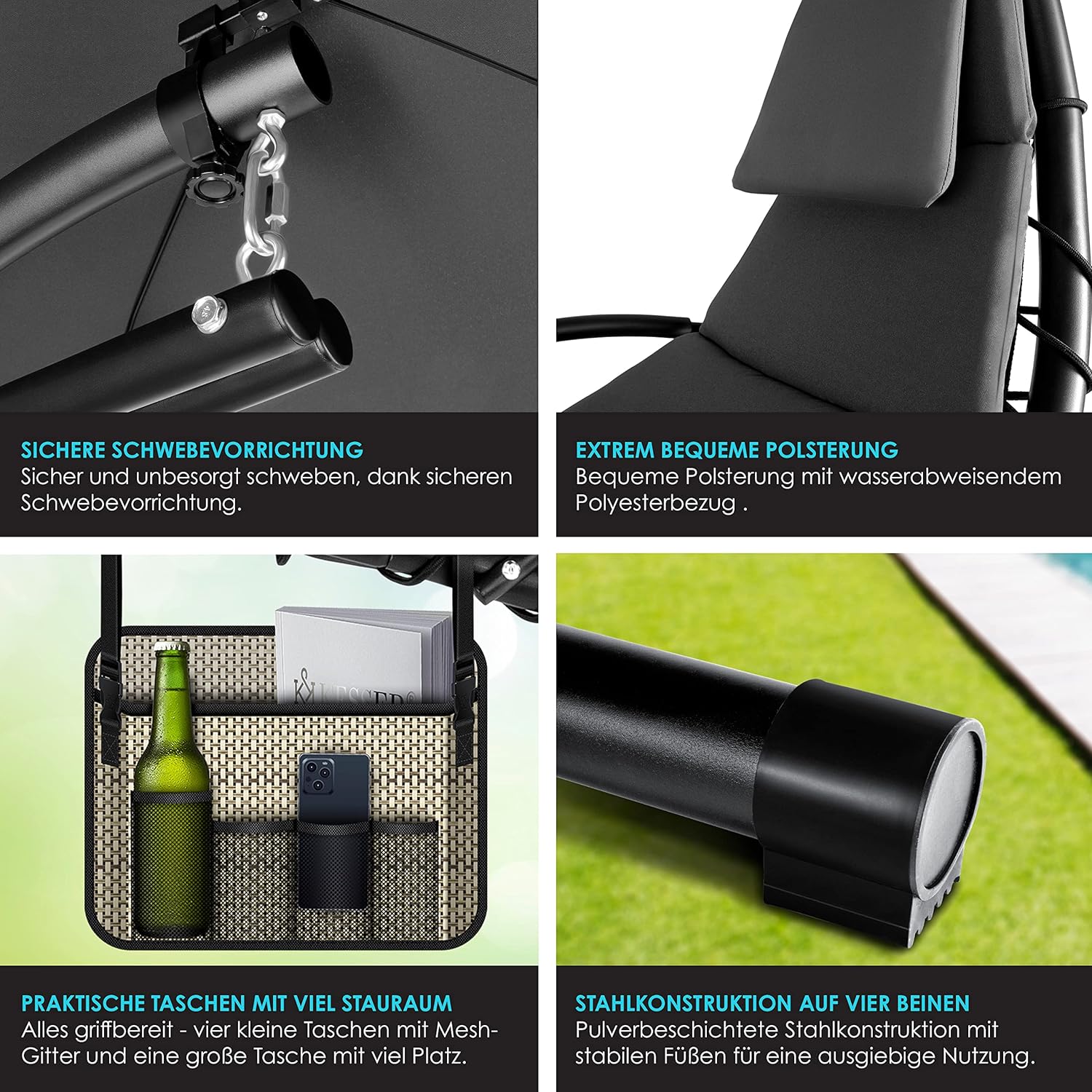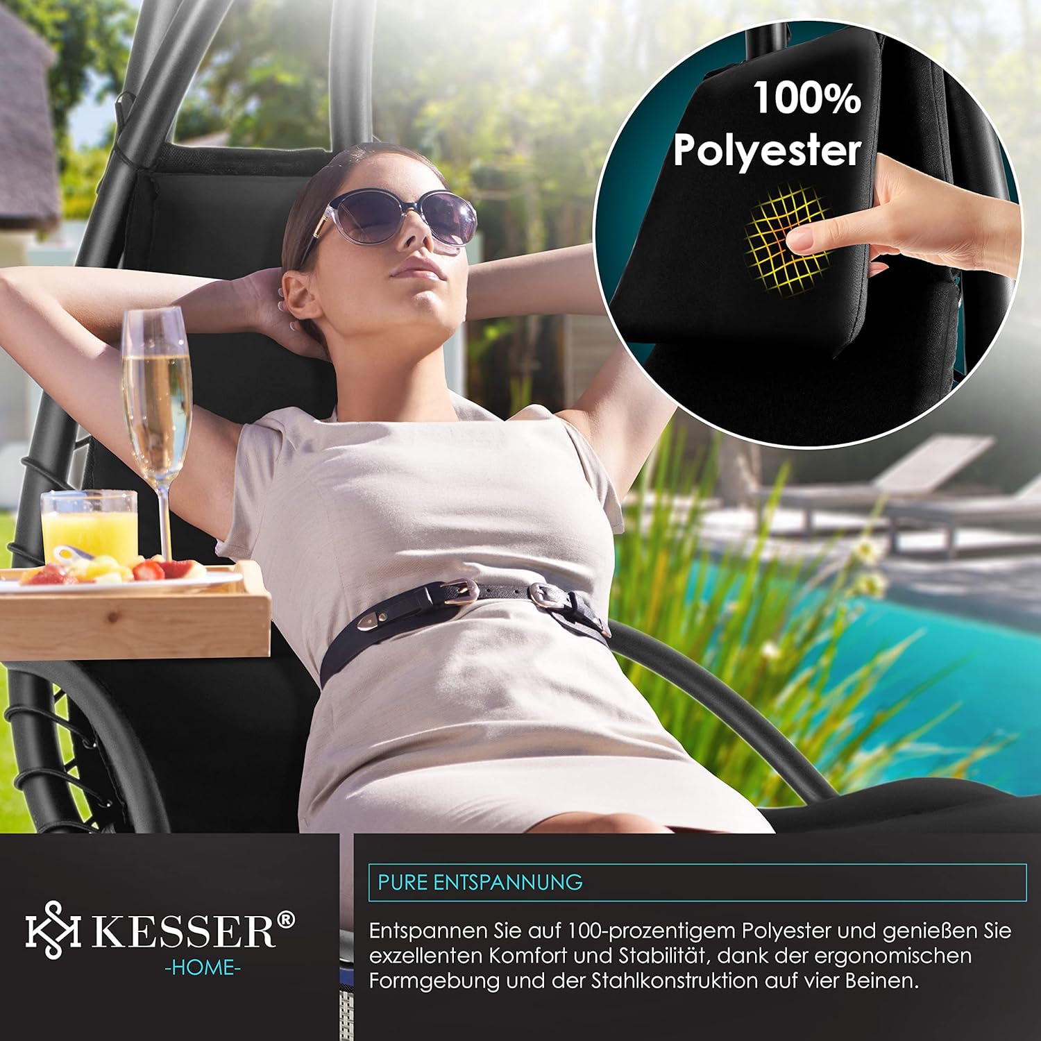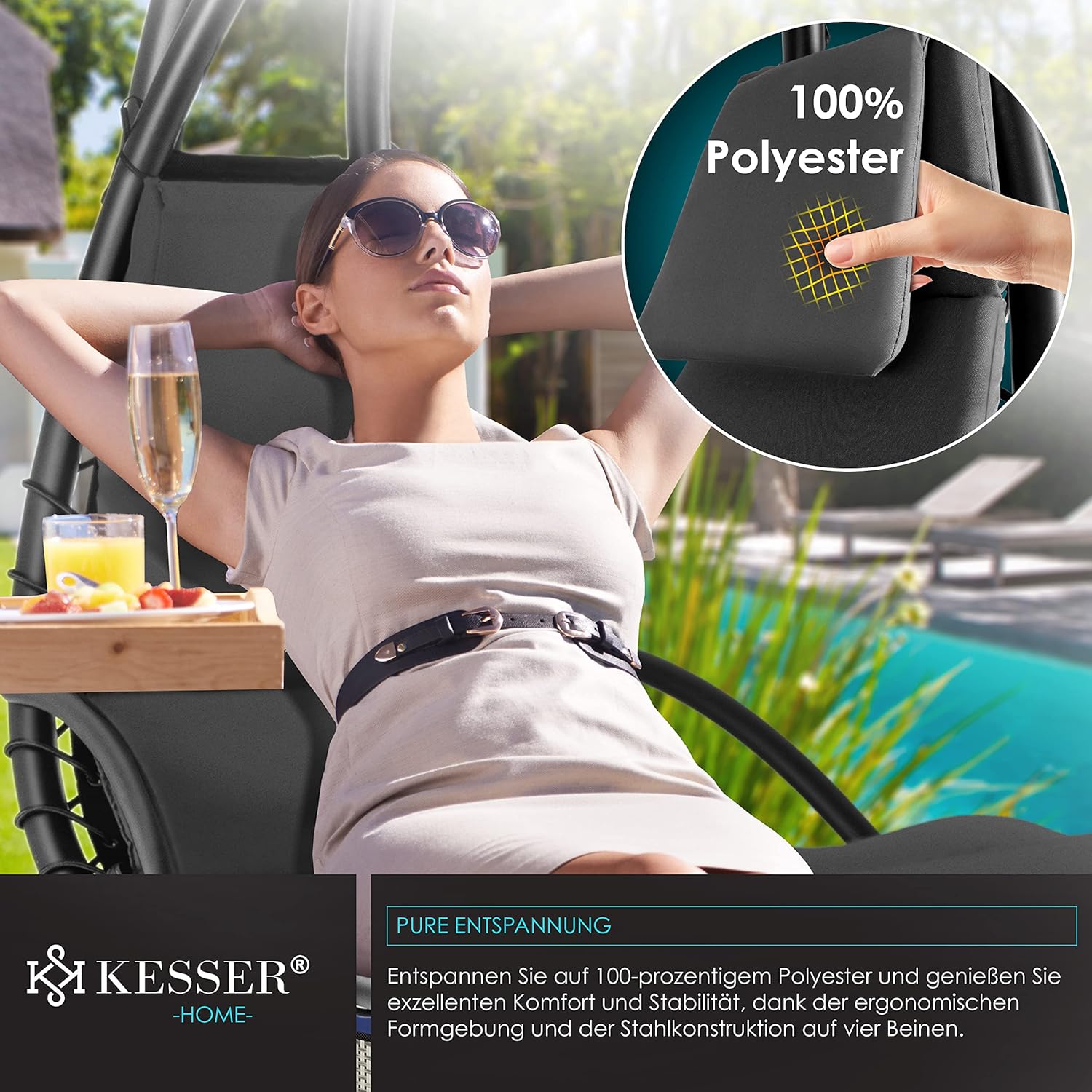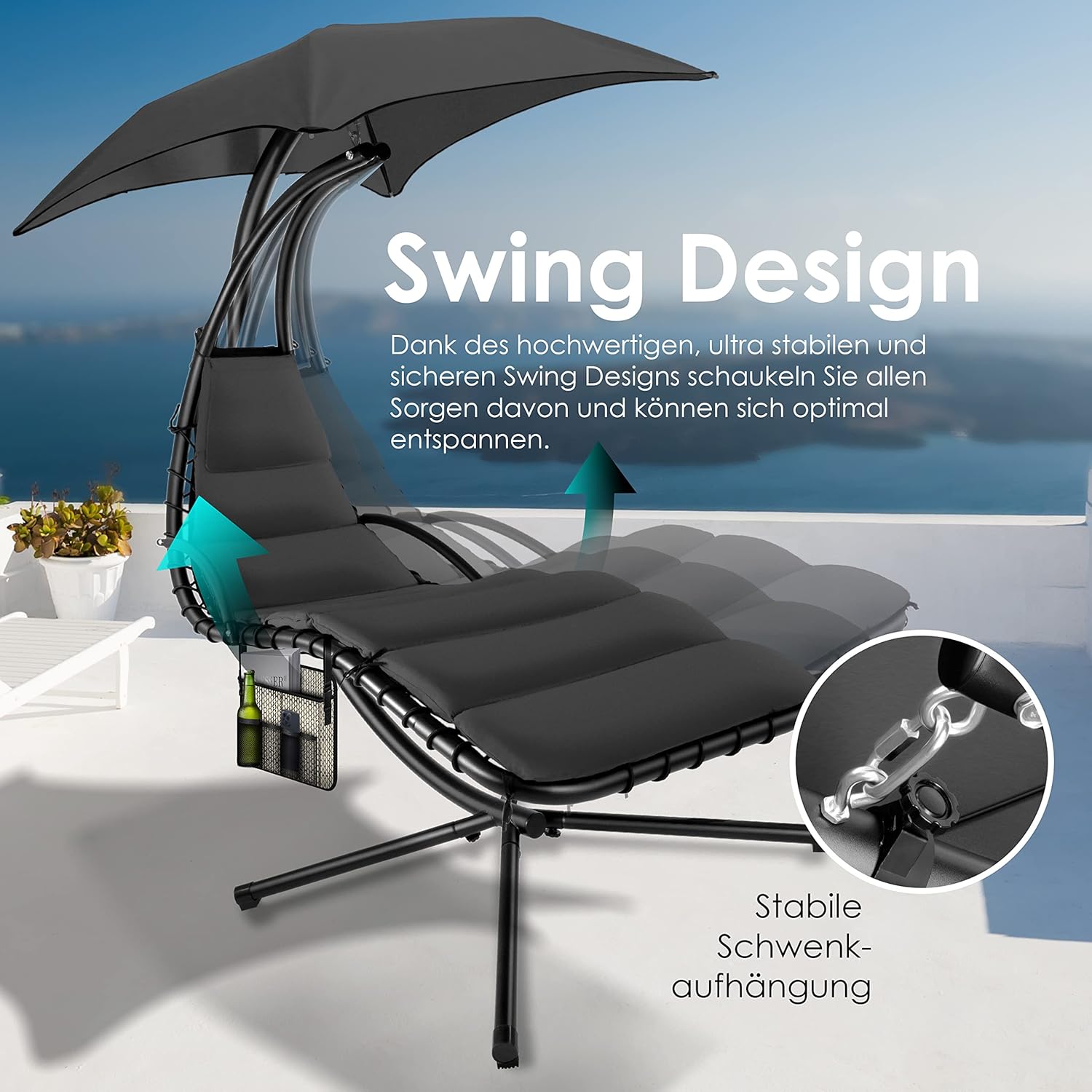- DESIGN ÉLÉGANT ET ÉPURÉ : Fauteuil suspendu au style contemporain, sobre et raffiné.