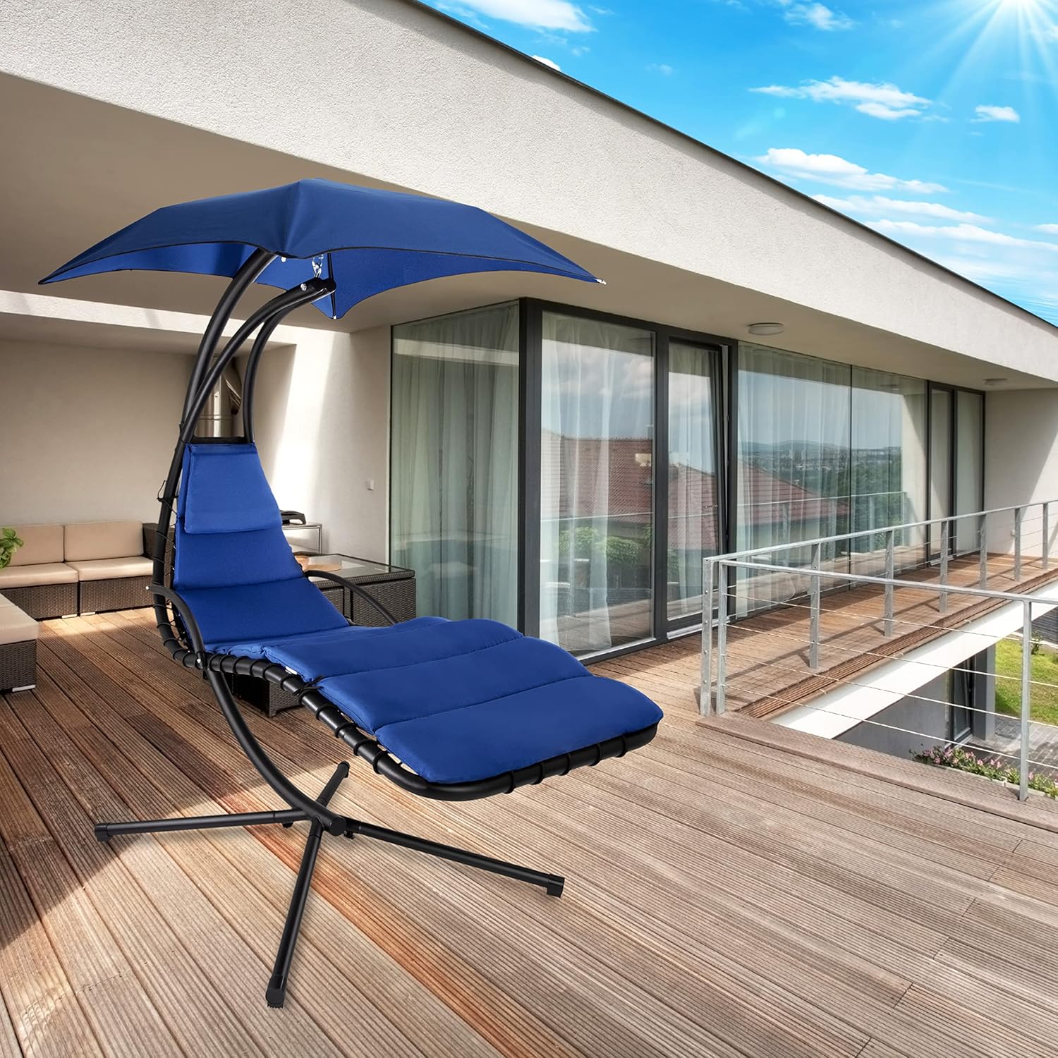 Chaise longue suspendue avec parasol et matelas inclus - Chaise longue suspendue