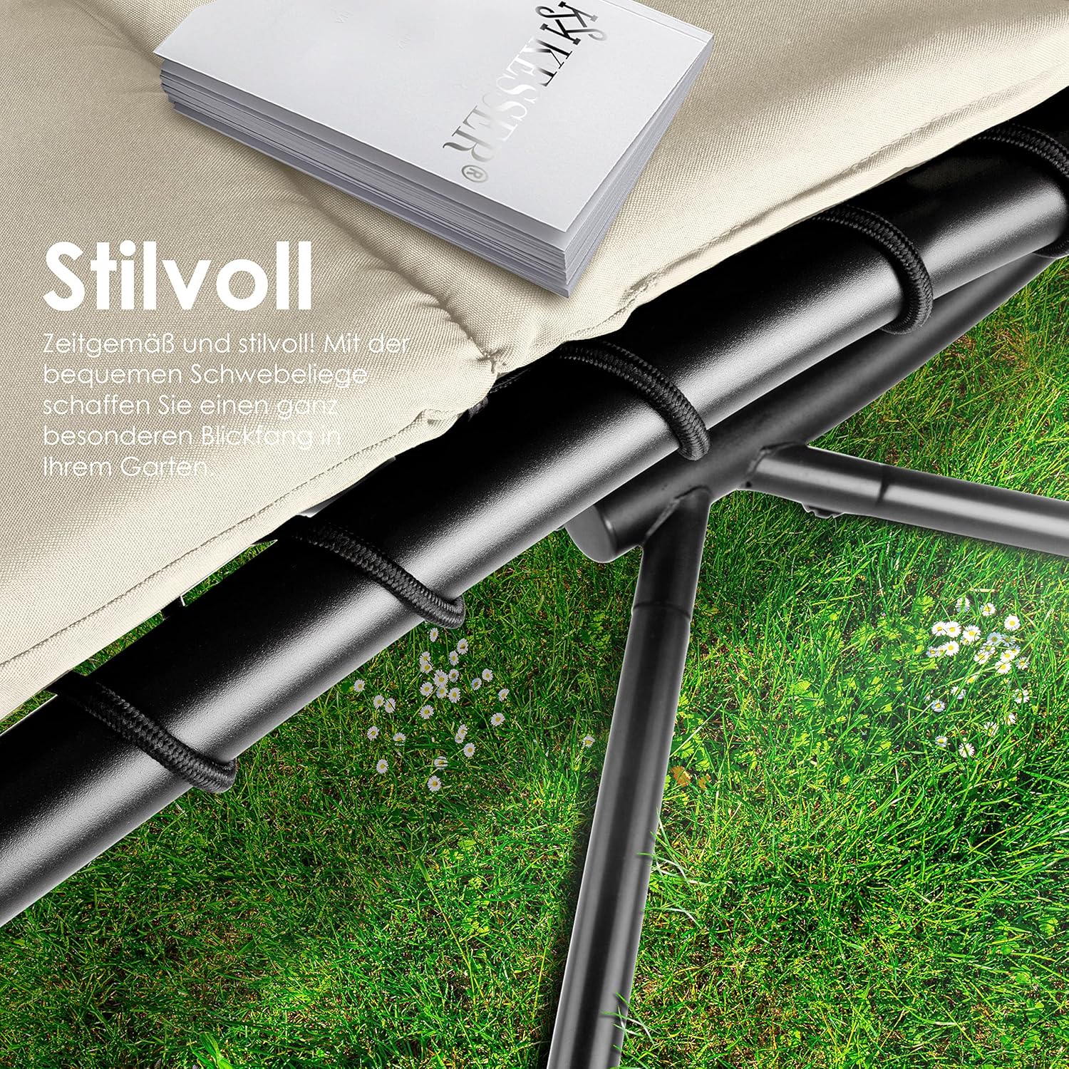 - CONFORT OPTIMAL : Base en polyester souple reliée au cadre par des cordes entrelacées offrant un confort supérieur.